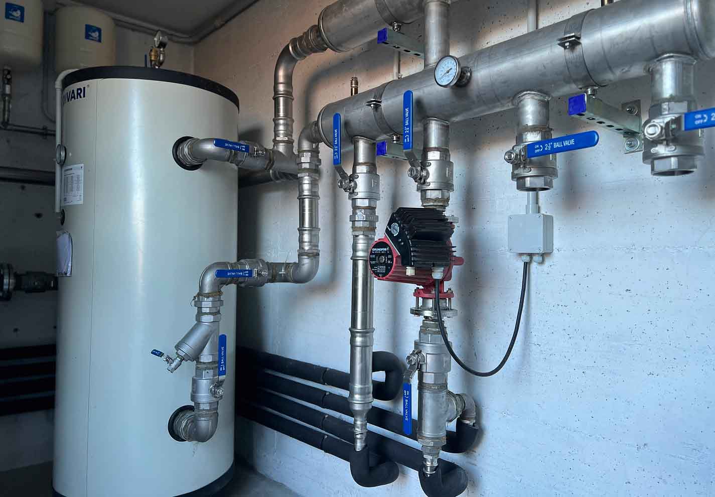 È stata progettata e installata una nuova fonte di alimentazione basata su cinque pompe di calore con sistema a cascata. Questo sistema consente di sfruttare al massimo l’energia prodotta dall’impianto fotovoltaico per il riscaldamento invernale, con la possibilità di integrare un sistema di raffrescamento per l’estate.